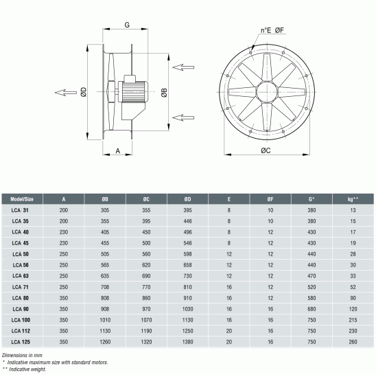 - LCAHP - high performance models in 13 diameters, 2, 4, 6 and 8 pole motors with 3, 6 or 9 blades.